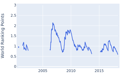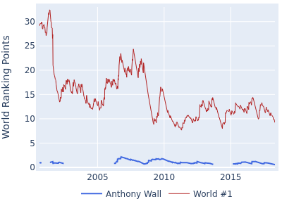 Anthony Wall's peak world ranking occured on December 25, 2006, when he was ranked #59 with 2.020 world ranking points.