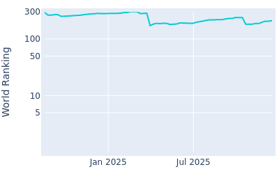 Danny Walker's peak world ranking occured on March 31, 2025, when he was ranked #171 with 0.791 world ranking points.