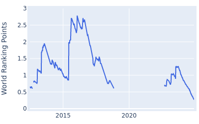 David Lingmerth's peak world ranking occured on February 1, 2016, when he was ranked #35 with 2.751 world ranking points.