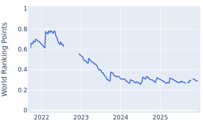 Lukas Nemecz's peak world ranking occured on March 7, 2022, when he was ranked #224 with 0.780 world ranking points.