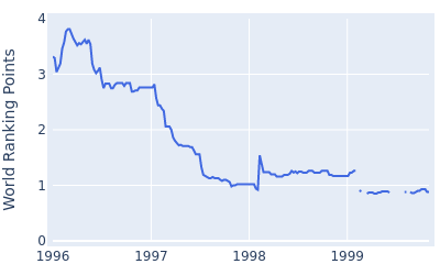 Scott Simpson's peak world ranking occured on February 26, 1996, when he was ranked #34 with 3.810 world ranking points.