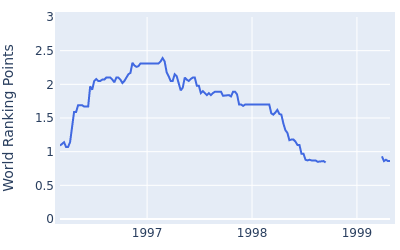 Yoshinori Kaneko's peak world ranking occured on March 3, 1997, when he was ranked #62 with 2.340 world ranking points.